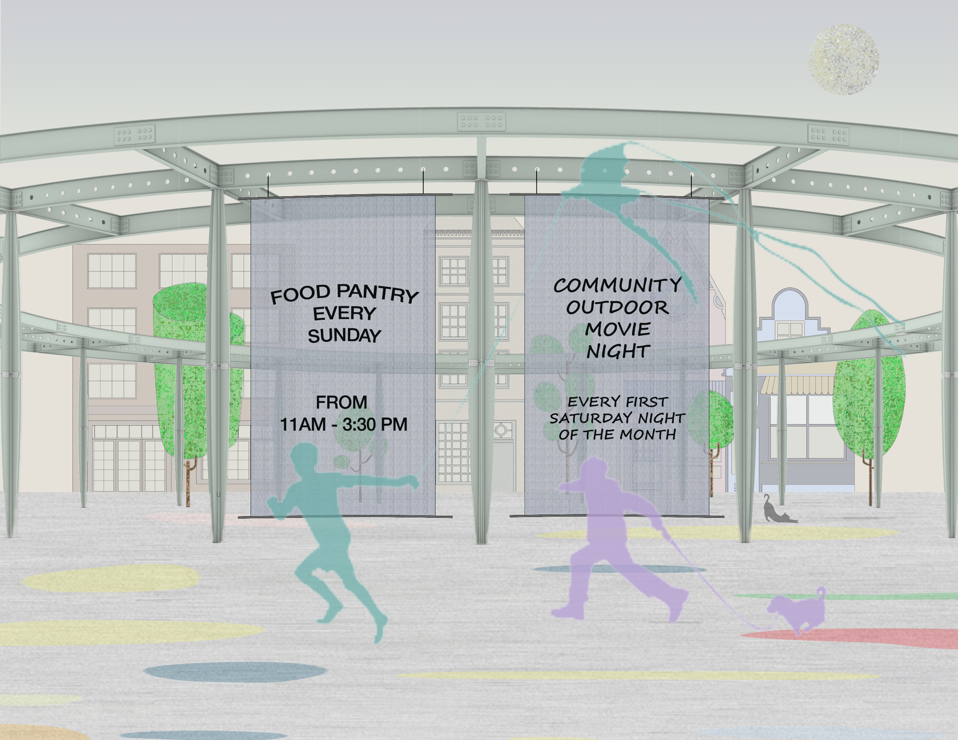 Reimagining Burnham’s grand social agenda to be conceived at community level, we picture a structure that frames the state of living, detects concerns and sustains progress. This structure, bearing the legacy of Chicago architects, can be pre-fabricated and is easy to assemble. Whether utilized as a place for protest or transformed into an alternative care facility, the intention of the designed structure is elastic, and thus a neutral agency for negotiation. Ultimately, this structure reflects the fundamental humane——people’s rightful place to voice opinions, to reverberate implicit faith, to fill a gap wherever needed.